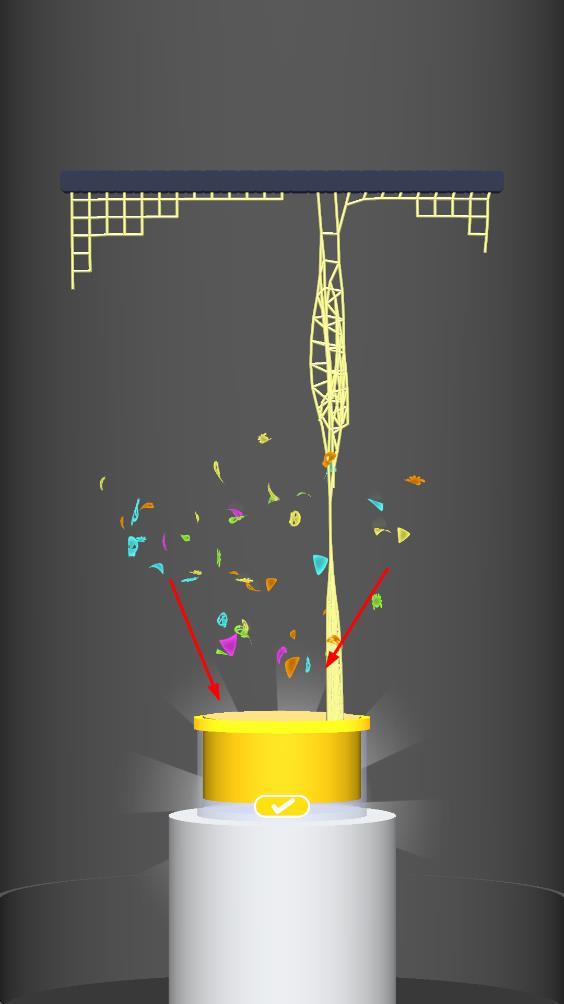 1、切割上方黄色网格,引导黄色物体落入下方容器。