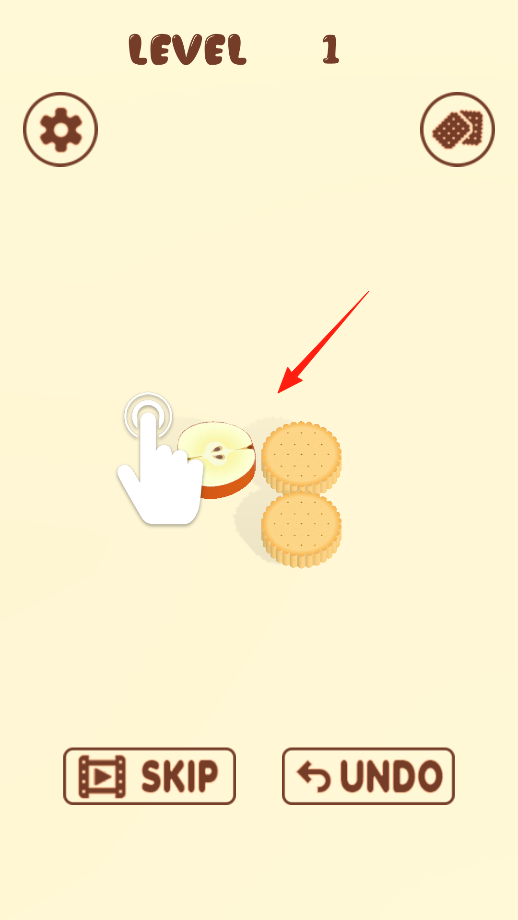 2、到了第一关,屏幕上有苹果片和饼干,按照提示,点击苹果片,然后把它和饼干组合,试着做出美味的冰淇淋三明治,看看能不能成功搭配。