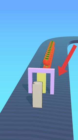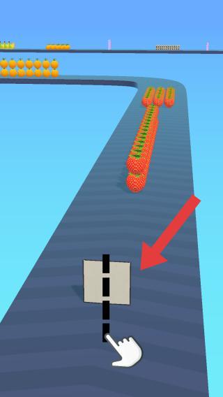 3、除了需要切割水果以外,还能够在跑道上遇到阻碍我们前行的障碍物,玩家需要根据障碍物的形状进行变换。