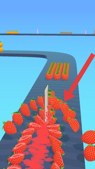 1、切割水果闯关:赛道上有多种水果,需不断切割它们,切割越整齐得分越高,配合了跑酷的节奏完成切割任务,感受到了精准操作的爽快。