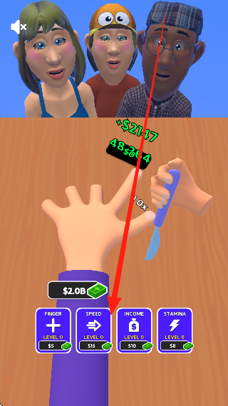 刀形手指是款能给玩家带来惊喜体验的休闲益智类游戏,玩法类似切手指,延续游戏乐趣,获取金币来强化自己的体力,可选择不同工具对模拟手指进行自由切割,过程中需凭借快速的手速和敏捷的反应能力完成操作,尽情享受游戏带来的惊喜与乐趣。