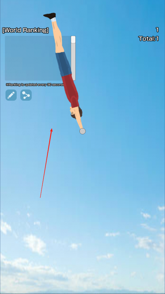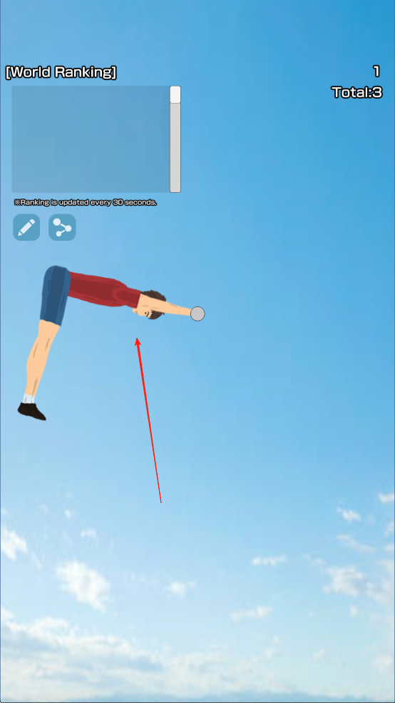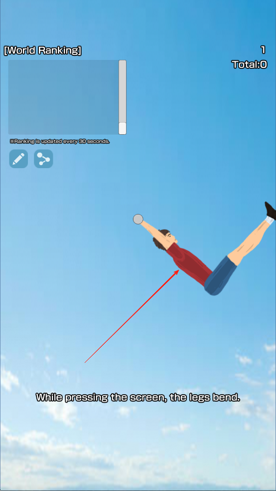 2、把控按屏幕的时长与力度,控制腿部弯曲程度,使角色获得合适的旋转动力,避免因力度不当导致动作失误掉落。