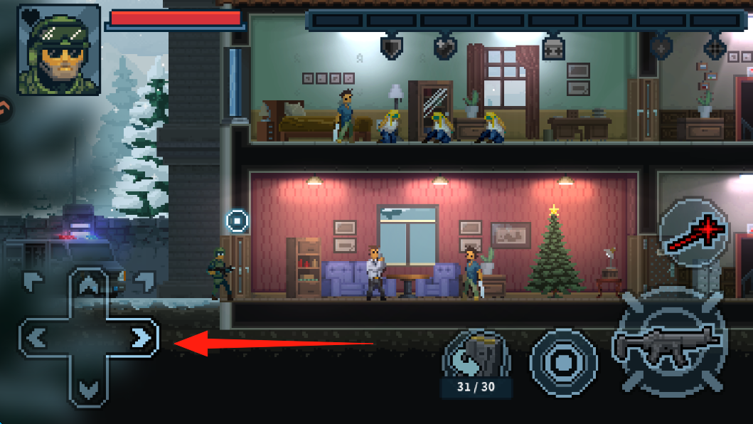 3、游戏关卡内,操控左下角十字方向键,控制小队角色移动,规划路线执行任务推进流程。