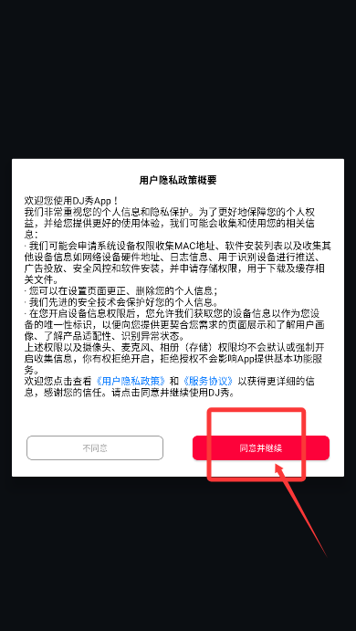 1、首次启动应用时,请详细阅读隐私条款摘要,确认后点击"立即体验"。