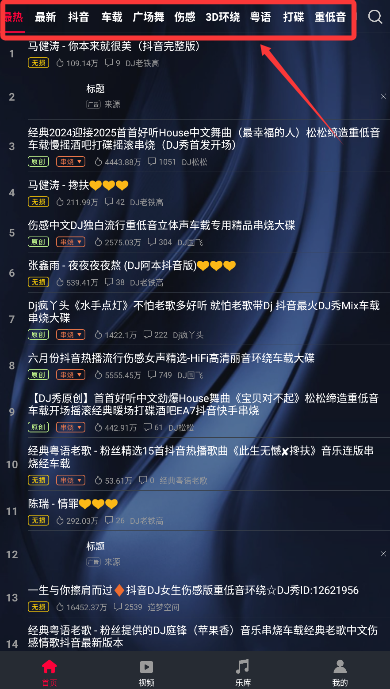 1、全球曲库实时同步系统收录超过200万首DJ音乐资源,涵盖电子舞曲、浩室音乐、铁克诺等风格,每日更新热单