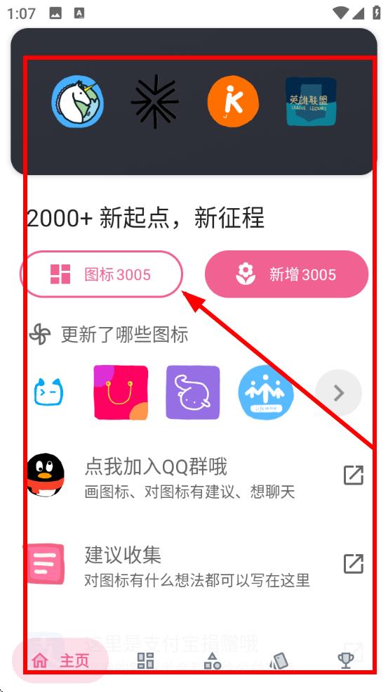 1、进入主页,点击【图标3005】按钮,可查看对应编号的图标集合,浏览丰富图标资源。