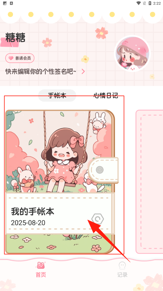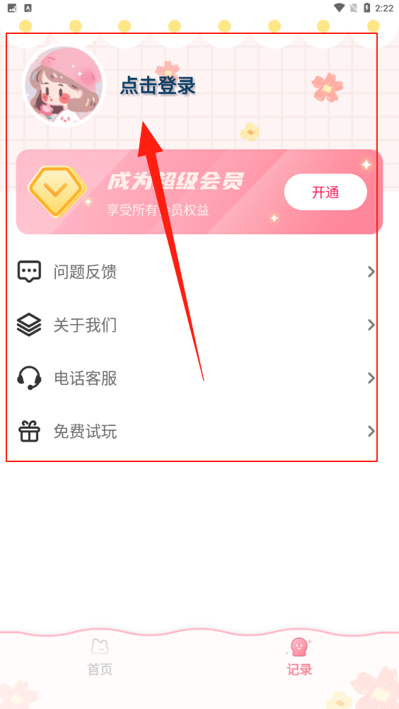 2、切换到记录页,点击登录,关联账号后,可反馈问题、了解会员权益,管理手帐数据。