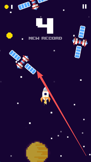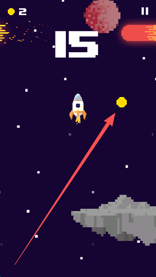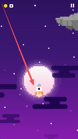 2、飞行中观察每个阻碍,长按屏幕让火箭加速,松开屏幕让火箭慢下来,刷新分数。
