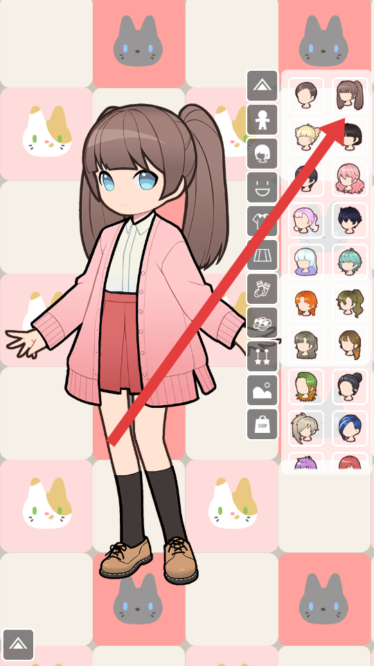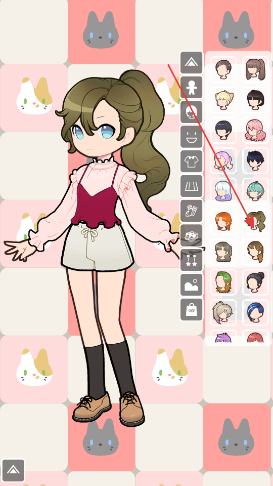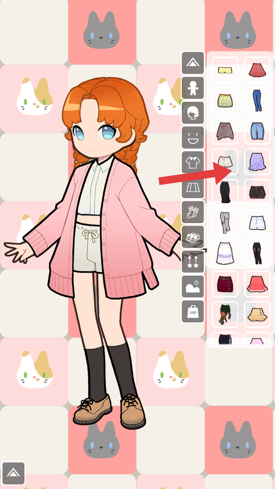 3、最后选袜子、鞋子,完善细节,也可点表情、背景图标调整,确认满意后保存,完成角色装扮。