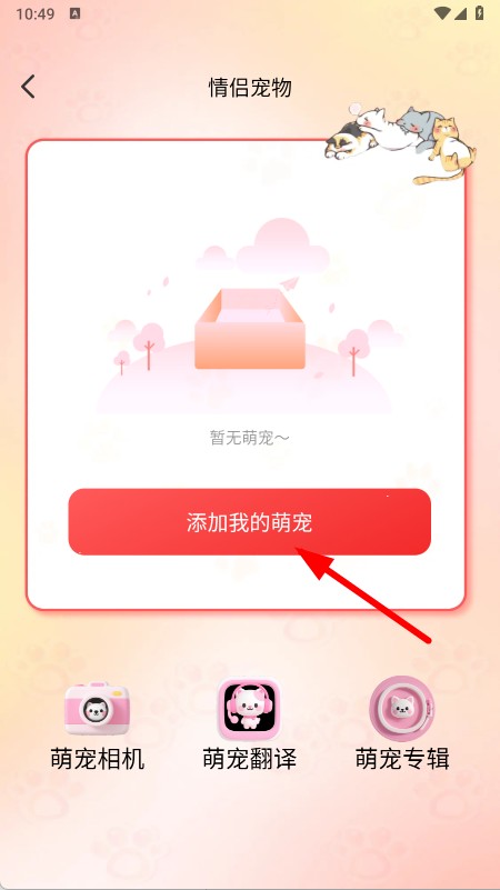 1、打开APP,在首页点击右下角宠物图标,进入情侣宠物页面。