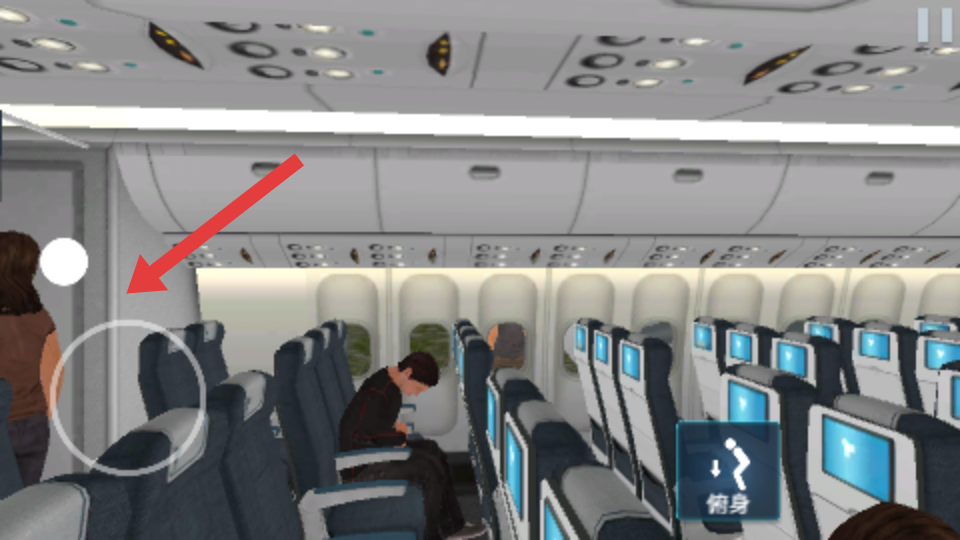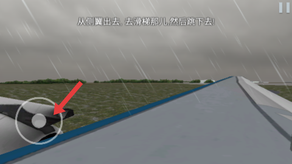 2、若遇紧急情况,看到从侧翼出去,去滑梯那儿,然后跳下去的提示时,操控角色快速移动至飞机侧翼,借助滑梯跳下飞机。