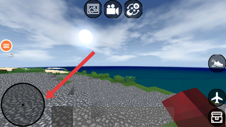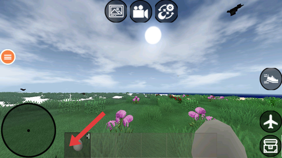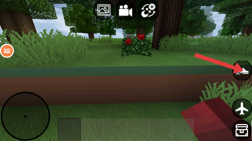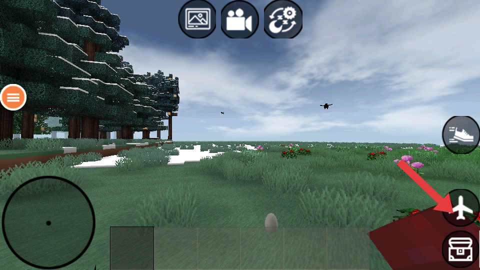 3、若想体验空中视角或快速转移位置,点击右侧飞机图标的按钮,角色可切换到了飞行的模式。