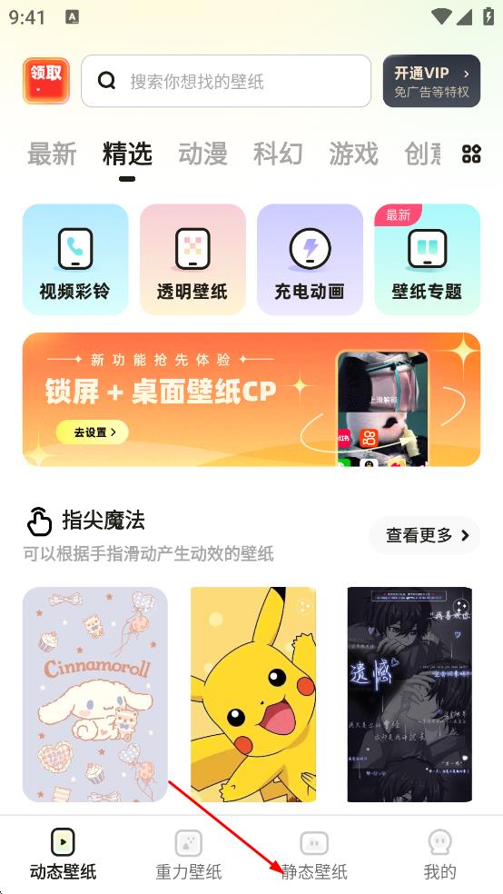 1、在壁纸应用主界面,点击静态壁纸,进入静态壁纸页面。