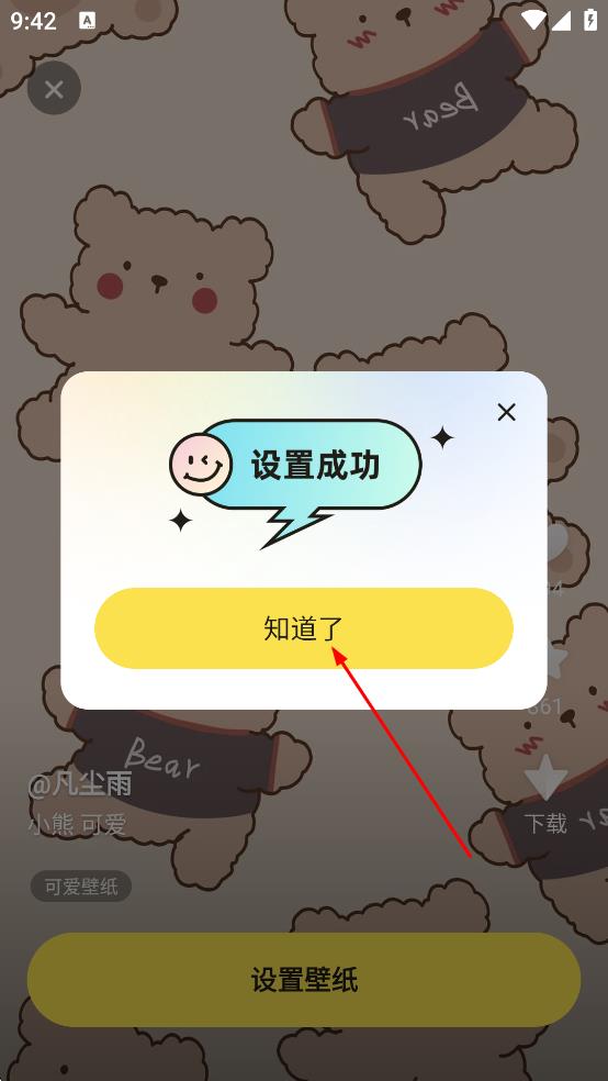 4、壁纸设置成功后,会弹出设置成功提示框,点击知道了即可。