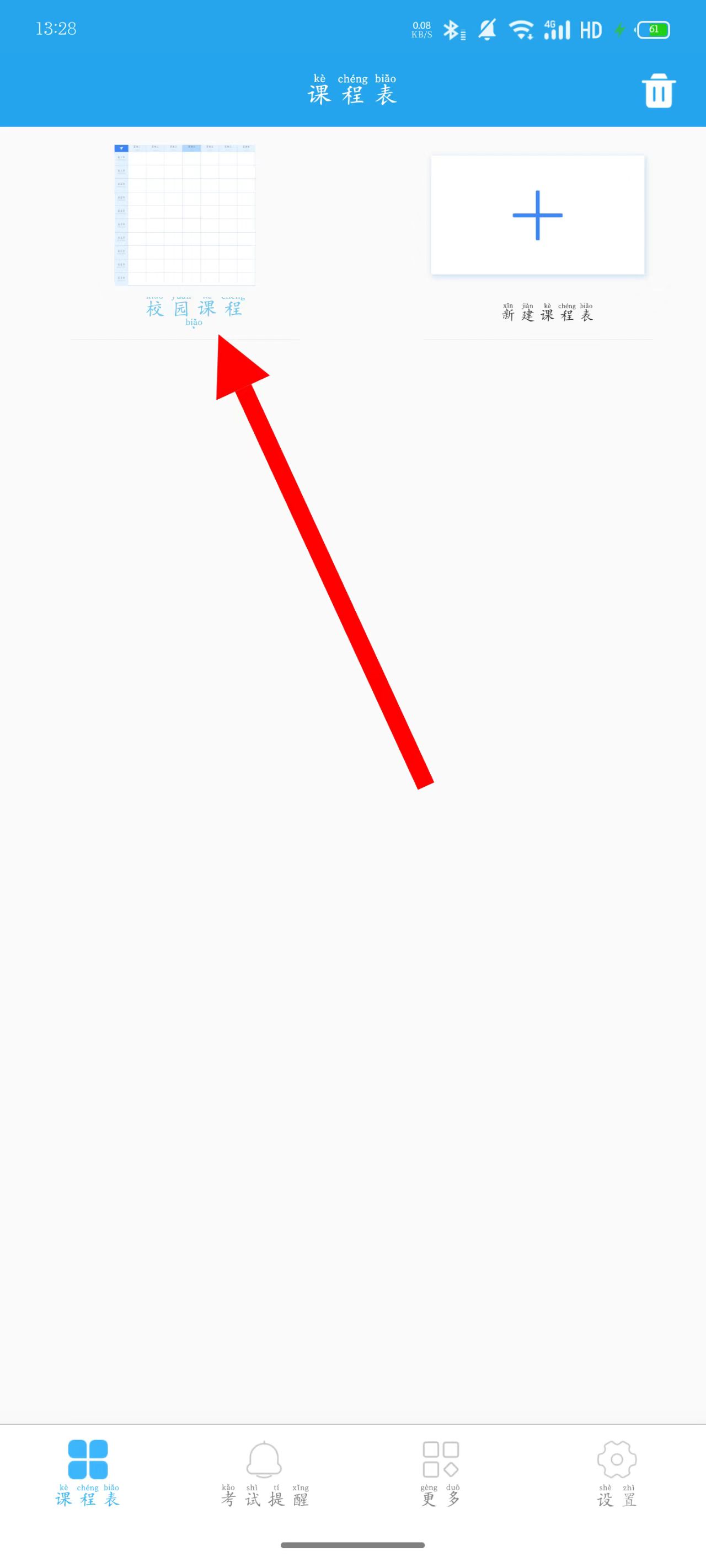 3、课表创建成功后,点击生成的课表卡片,进入课表编辑页面。