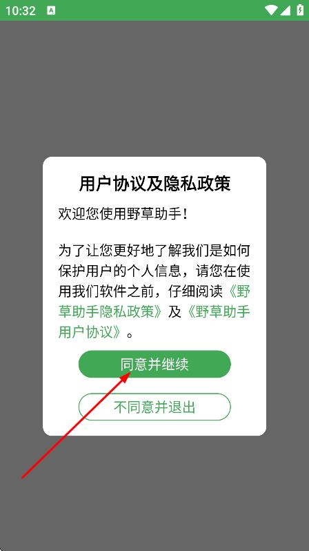 1、在用户协议及隐私政策弹窗中,点击同意并继续。