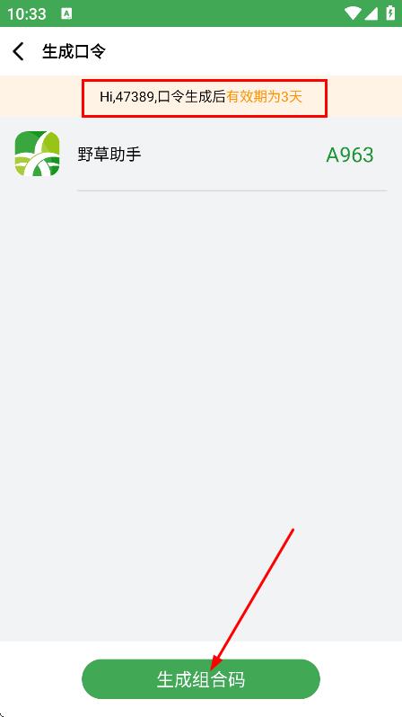 4、在生成口令页面,点击生成组合码,完成组合码生成。