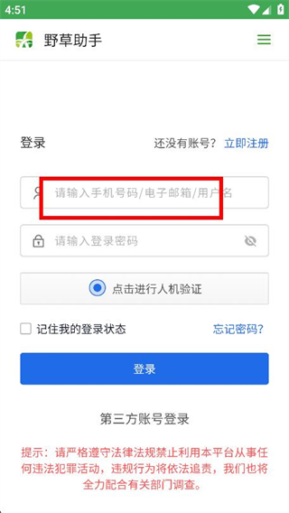 3、点击输入框,填写需要登录的账号信息。