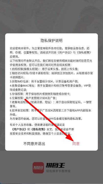1、打开APP,在弹出的提示框中,点击同意按钮,进入主界面。