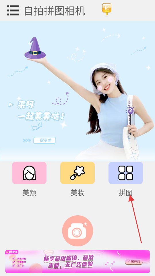 1、在自拍拼图相机首页,点击拼图,进入选择布局页面。