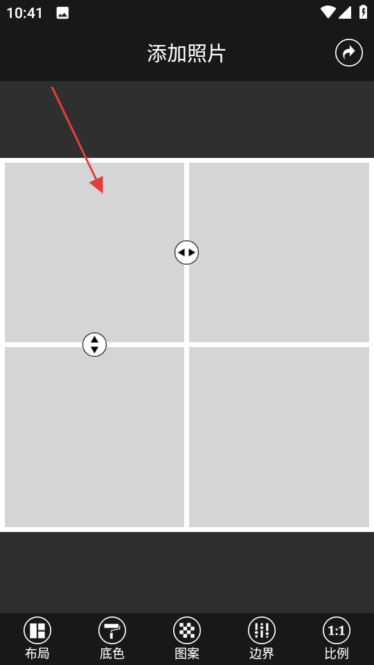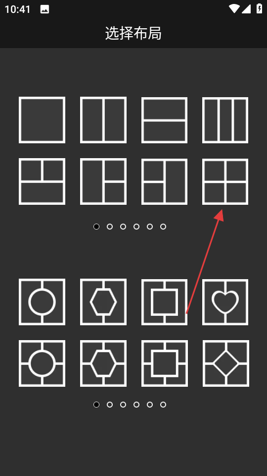 2、在选择布局页面,选择喜欢的拼图布局,进入添加照片页面。