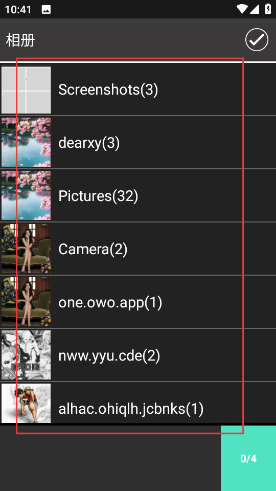 4、在相册选择页面,选择四张要添加的照片,即可进行拼图。