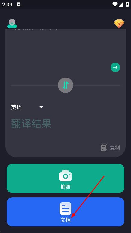 2、在翻译器主界面,点击文档,进入文档翻译页面。
