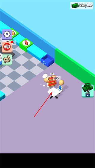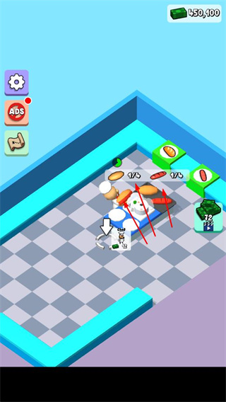 3、顾客会有食物需求显示,厨师成功送餐给顾客后,能获得相应的收益,收益会在右上角显示。