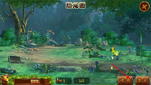4、喂养恐龙,点击喂食按钮,为恐龙园中的恐龙提供食物,促进恐龙成长,提升恐龙园的发展进度。