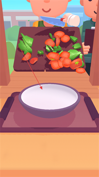 4、切碎食材后,点击屏幕将切好的食材放入下方的碗中,完成菜品准备步骤。