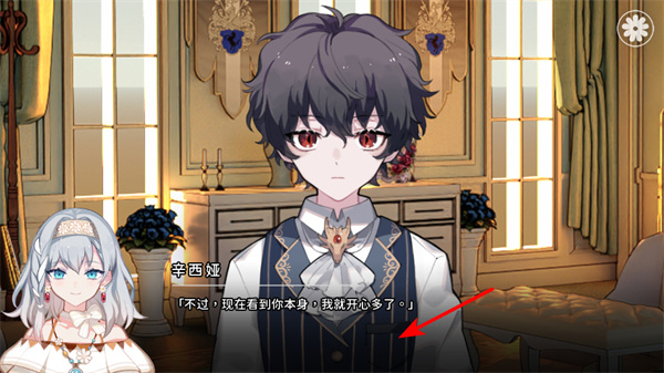 4、互动角色对话,在与辛西娅的对话中,点击剧情推进区域,继续对话内容,深入了解角色情感和剧情发展,增强游戏的沉浸感。