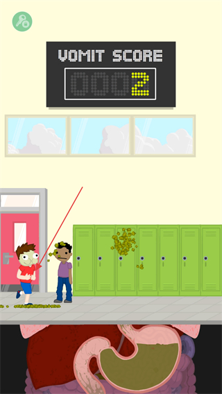 1、操控角色移动,向其他角色喷射呕吐物,积累呕吐分数。