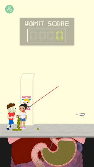 3、靠近带有VOTE!PREZ标识的区域,继续喷射呕吐物获取分数。