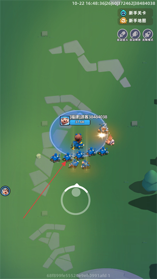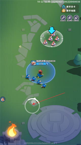 1、操控角色移动,在新手地图中集结蓝色小兵,准备进攻敌方单位。
