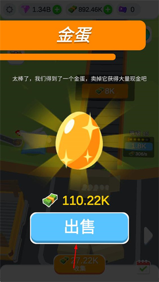 3、点击收集按钮,收集鸡蛋等资源,积累游戏财富。