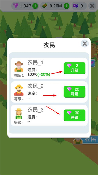 4、花费钻石升级农民速度或聘请新农民,提升农场经营效率,助力农场发展。