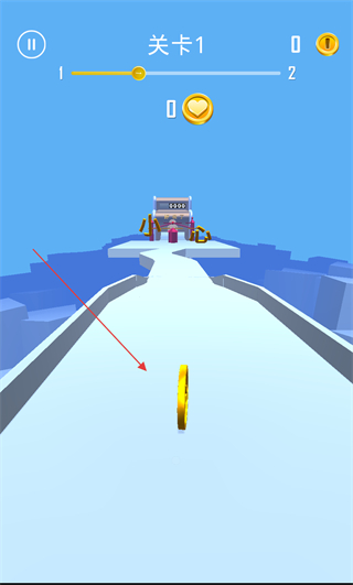 1、操控硬币在关卡赛道上前进,收集沿途金币,提升关卡进度。