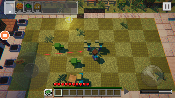 1、操控角色移动,收集黄色方块资源,用于种植植物。
