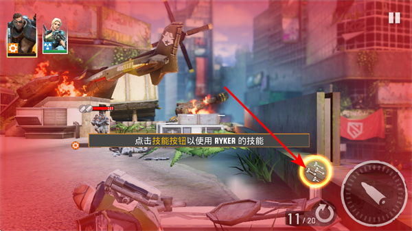 4、点击技能按钮使用英雄技能,这是快速清敌的基础操作,使用后可对敌人造成范围伤害,顺利推进关卡进程。