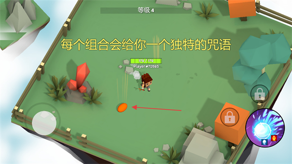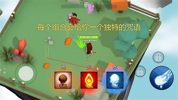 2、操控角色移动,破坏橙色道具收集资源,释放咒语攻击敌人。