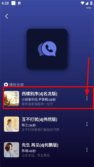 2、在来电铃声列表页面,点击目标铃声右侧的三点图标,弹出操作选项。