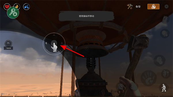 2、使用操纵杆移动热气球,这是推进探索的核心操作,移动后可前往新区域,寻找生存资源与任务目标。