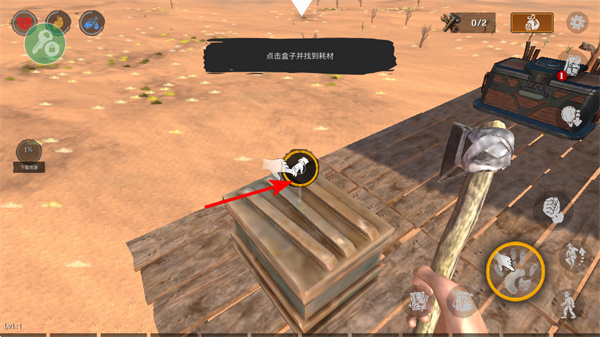 3、点击盒子寻找木材,这是积累物资的关键步骤,点击后可获取木材资源,为维修或道具制作提供材料。
