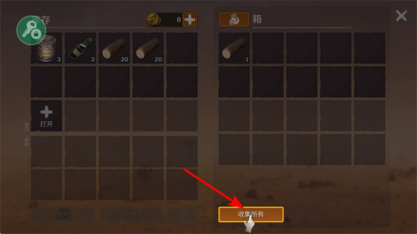 4、点击收集所有按钮整理资源,这是管理物资的基础操作,可将获取的资源存入背包,方便后续使用。