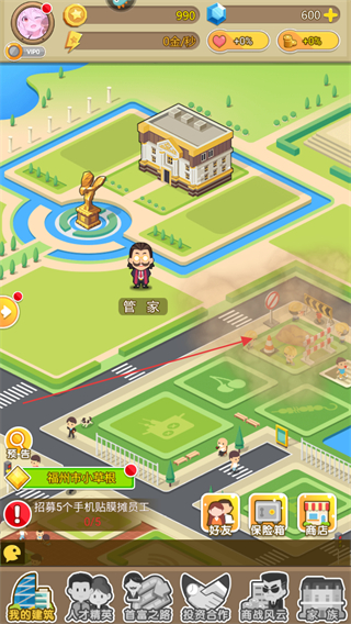 4、招募员工并升级,提升建筑赚钱效率,积累大量金币,不断壮大财富帝国。