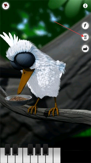 2、点击右侧餐具按钮,给拉里鸟一盘食物进行喂食。