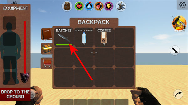 1、在背包界面中,留意BAYONET刺刀道具,可将其装备以提升战斗能力,助力应对危险。