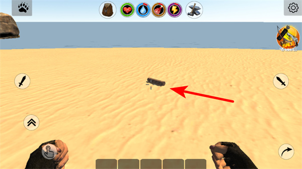 2、在荒岛场景中,发现地面上的物品时,靠近并拾取,这些物品可用于后续的生存与制作。