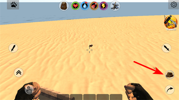 3、看到地面上的资源时,点击右侧的收集按键,将其收入囊中,积累的资源是制作工具。