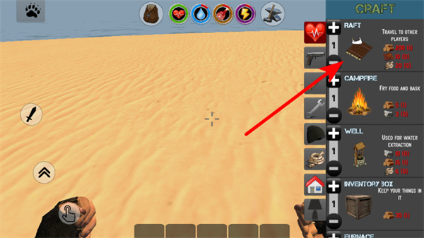 4、进入制作界面后,点击RAFT木筏制作选项,可制作木筏用于在海域间移动,拓展范围。